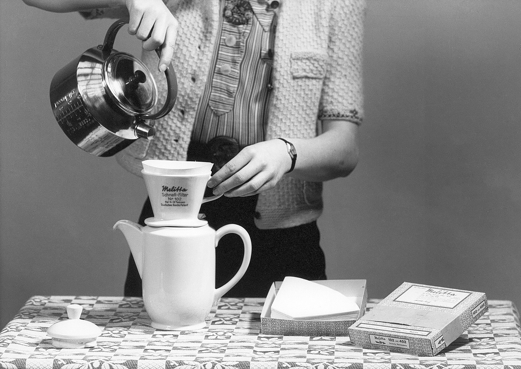 Der Kaffeefilter bekommt seine ikonische, konische Form. Plötzlich wird das Kaffeekochen noch einfacher – und Melitta setzt einen neuen Standard.